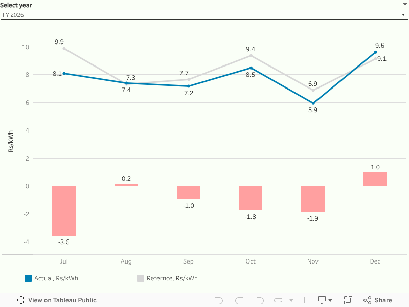 Explore evolving electricity generation patterns, year-wise and month-wise comparisons, and deviations from reference projections to uncover fuel trends.